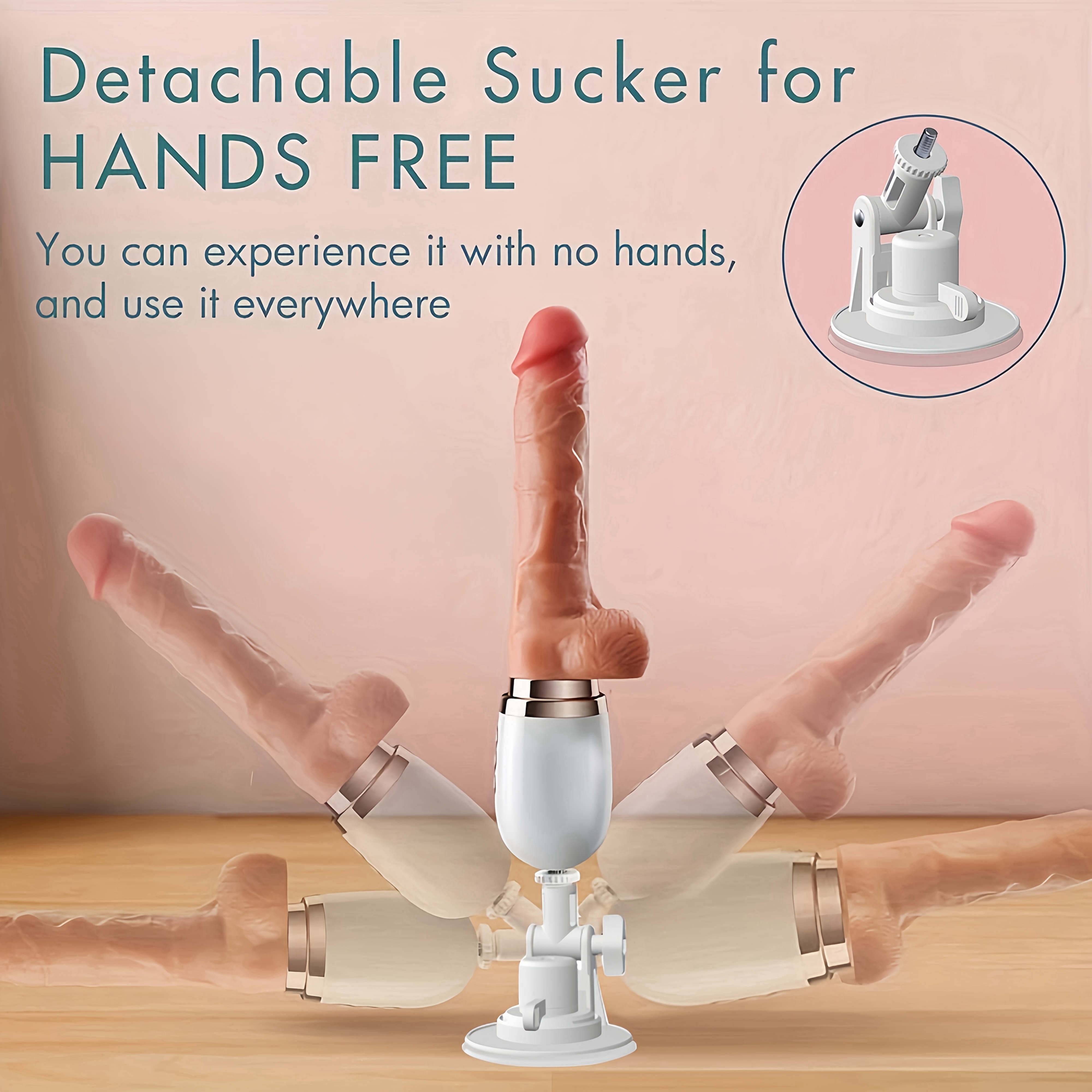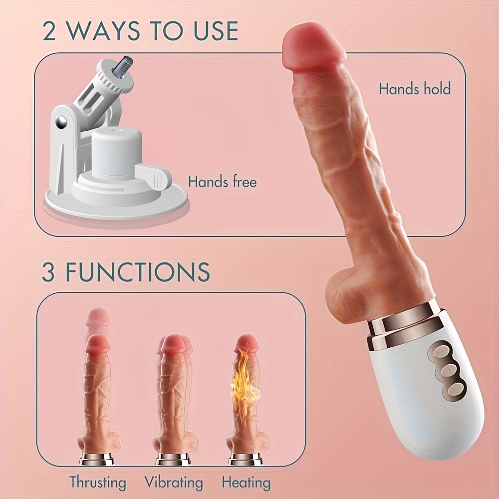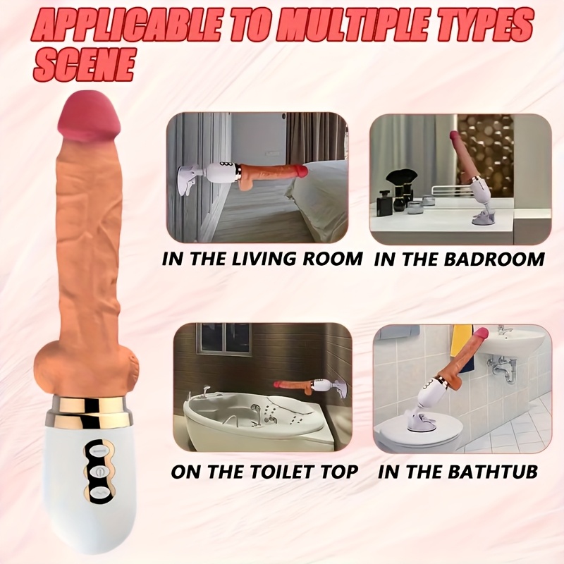 This realistic thrusting Personal massager vibrator with handle and detachable suer mount solves such problems perfectly! You can experience more exciting poses and uses without hitting the cold ground!, Dildo