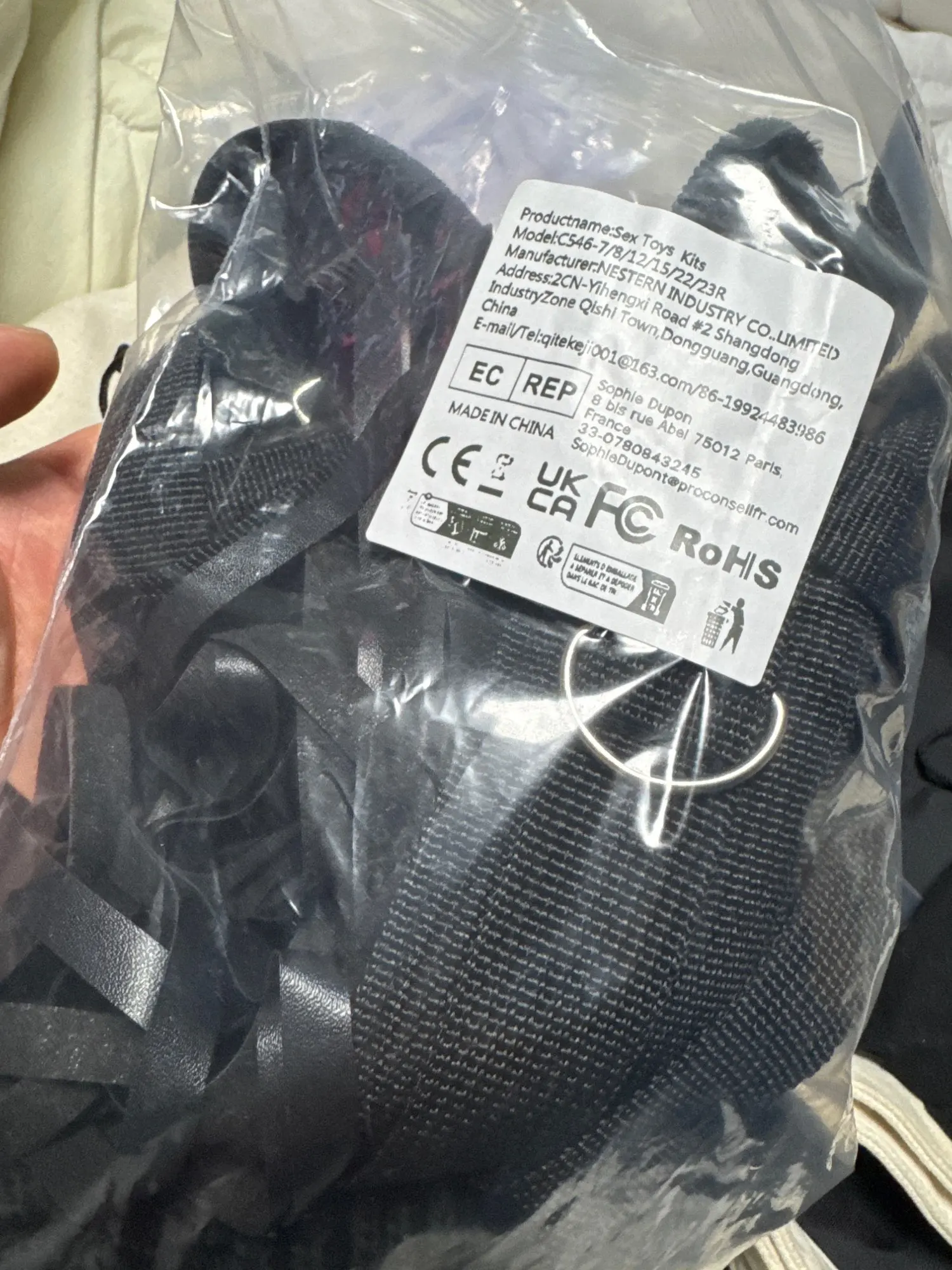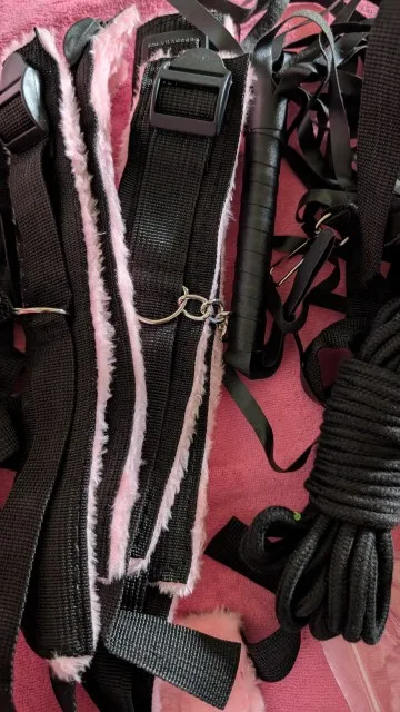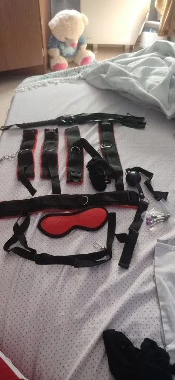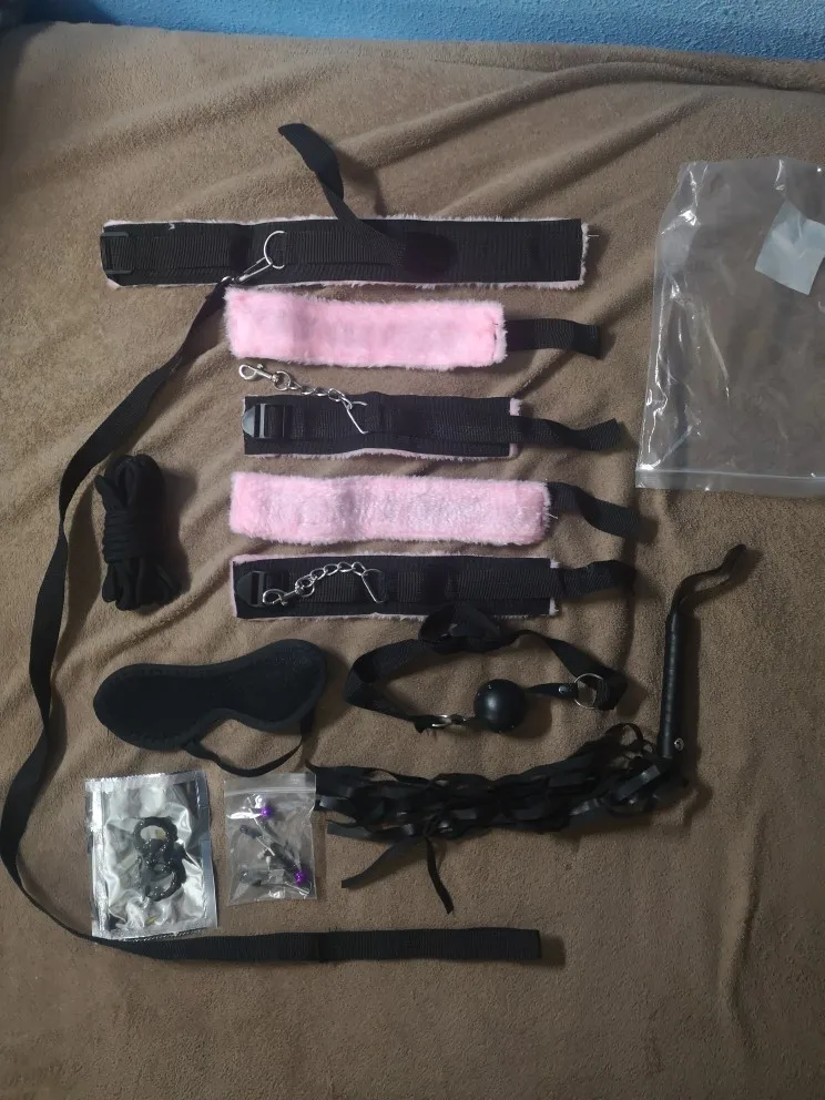 The set looks good, handcuffs for arms and legs. Rope for tying hair for nipples. Weaving without pain. without smell.